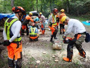 チェーンソー安全講習、整理伐材選木、ホダ場整備、運材