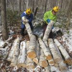 じょうてつ社員11名が冬の森に訪れました。協会員12名はE-8区で整理伐を行う班と、CSR活動のサポート班に分かれて活動しました。じょうてつの皆さんは集合場所の裏手C-2区のイタヤカエデの木にドリルで穴を開け樹液採取用のボトルを設置。その後各自ノコを持ちE-8区で整理伐を体験しました。昨年も参加された方もおり、少しコツをつかんだので冬の森の様子を堪能できたとのこと。イタヤカエデの樹液は500ml ほど集まり全員で試飲 ほんのりと甘みが感じられました。