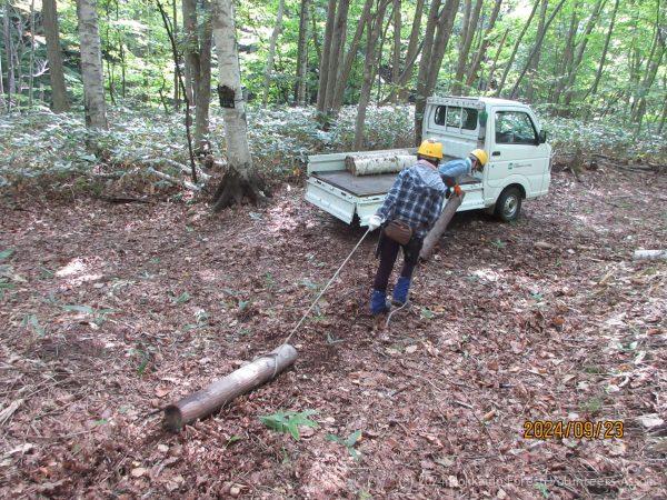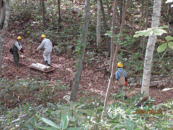 良く晴れた秋空の爽やかな一日でした。活動には10名が参加して、上流橋破損個所の修復、D-8区のミズナラ集材、A-4区北側のホダ木回収、リュバンの森のハルニレ移植などの作業を行いました。