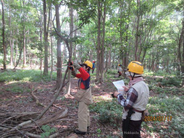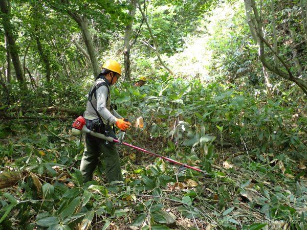 枯損木処理、笹刈り、生長調査