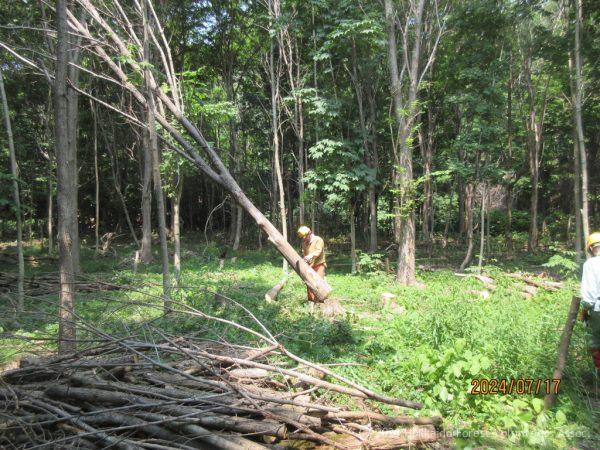 枯損木をチェンソーと手ノコで伐倒しました。