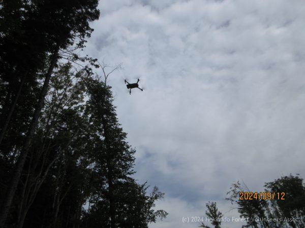 日本道路さんが植木地の確認に、石狩森林管理署野幌森林事務所の足立森林官が伐採木の許可のため同行。各々ドローンで空撮記録されていました。
