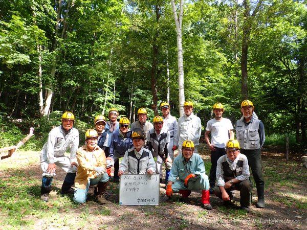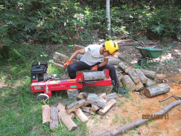 14名の会員が2班に分かれ4名が8月24日に行う予定の炭焼き準備を行いました。