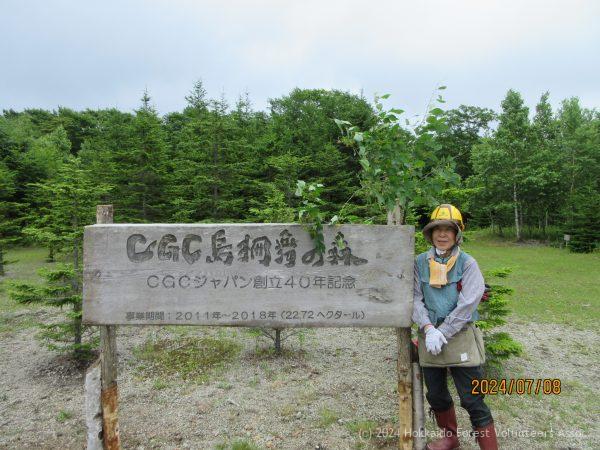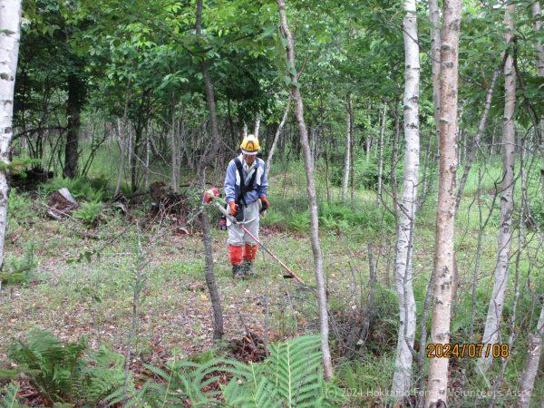 B班5名は6区で坪刈り、植栽列、作業道の草刈り、チャランケ周辺の草刈り、大看板と林道からの入り口看板の補修。