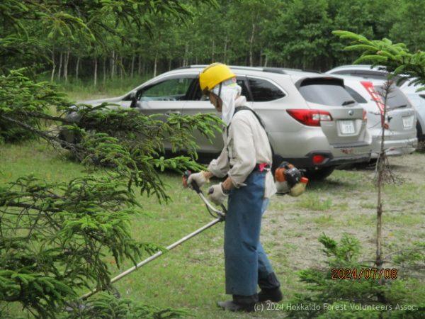 4区1列と7区4列で筋刈り成長調査列草刈りを行い翌日に予定していた中央道路の草刈りも行いました。