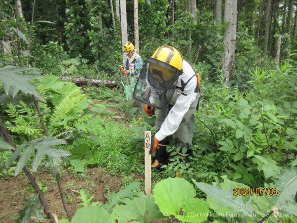 野幌トトロップの森で杭打ちと作業道の草刈り