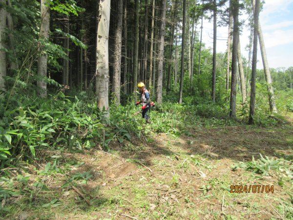 2班に分かれ4名が杭打ち3名が作業道の草刈りを行いました。