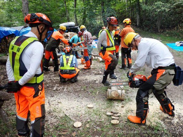 チェーンソー安全講習、整理伐材選木、ホダ場整備、運材
