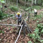 丸太集材 2019年4月13日 最終更新日時 : 2023年10月5日 hy 澄川都市環境林 本日は晴れて気温も上がりました。気持ちよく汗を流しました。 前回に引き続きE-5区の尾根に引上げていた丸太を、ウインチを使用して車の入れる場所まで運搬しました。