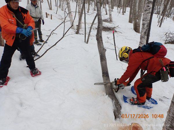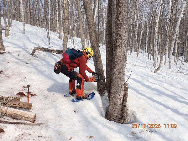 これで、チェーンソーが食い込みから外れその後は順調に作業が進みました。