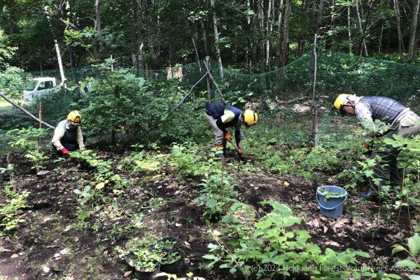 曇り空で時々日が差す天候、9時の小屋前温度計は21度と森ボラ活動には絶好の一日でした。