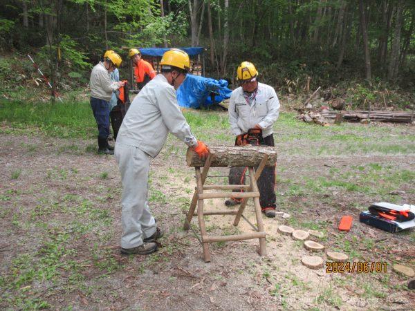 今日は9名が参加して、刈り払い機・チェンソーの安全講習、薪割り機・発電機の整備、澄川南小学校対応の準備(トイレ設置、危険木処理)、キャリコ木道取付部の砂利埋めと残材撤去、等の活動を行いました。