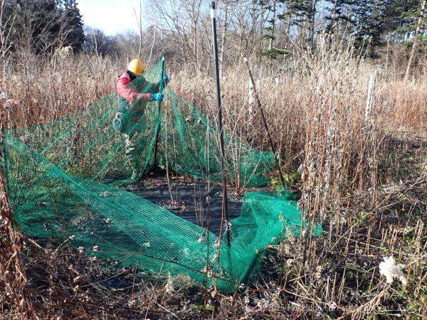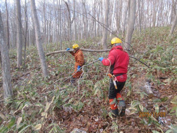 野幌道有林では4名が防獣網の引き下げを行いました。