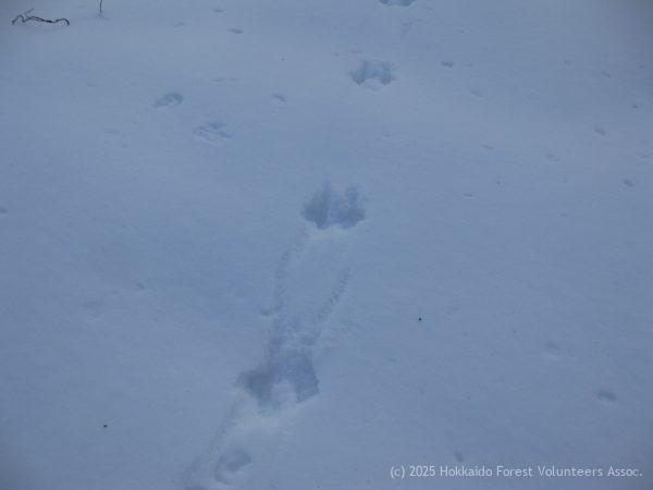 雪の上にくっきり残った足跡