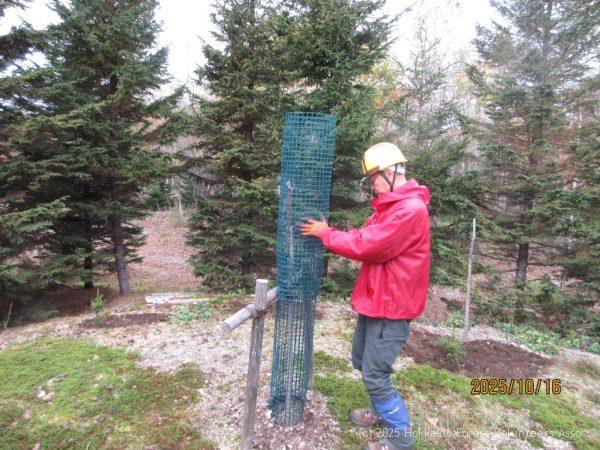 昼前にこの日の活動予定が終わり雨も降りだしそうな天候の為、昼食は食べずにそのまま澄川に戻り、残った苗を苗畑に埋めてから道具を片づけて解散しました。
