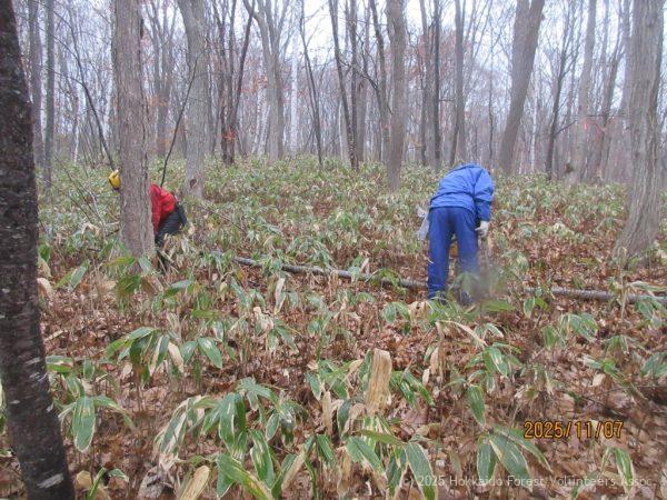 等の作業を行いましたが、活動途中から天候が急激に悪化。気温もどんどん下がり、雨・霙が降り出したため11時頃に活動を中止して解散となりました。