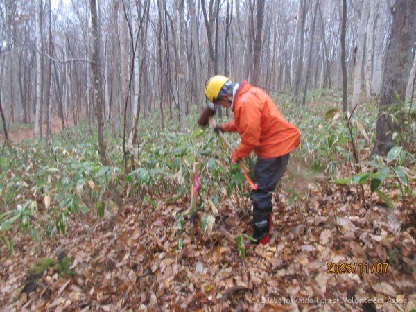 等の作業を行いましたが、活動途中から天候が急激に悪化。気温もどんどん下がり、雨・霙が降り出したため11時頃に活動を中止して解散となりました。