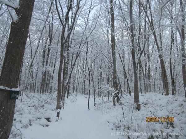 厳しい冷え込みと朝から雪が降り続く、本格的な冬の活動日となりました。体験入会の紺田さんを含む10名が参加して、寒さに耐えながら?楽しみながら?頑張って作業を行いました。