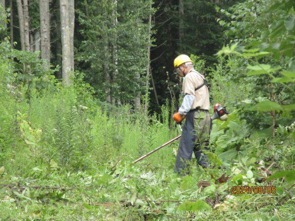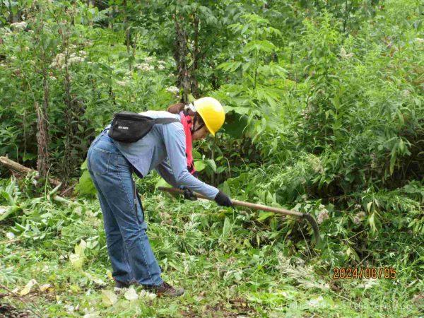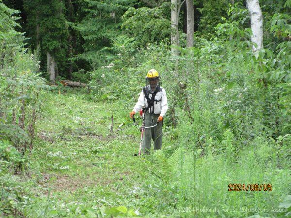 活動には会員8名と3日に体験入会した佐藤さんが再度加わり計9名で秋の植樹予定地の草刈りを行いました。