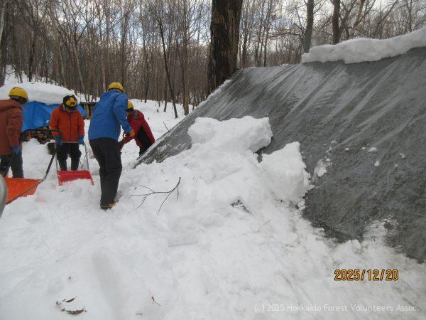 今年最後の活動日 朝礼前に22名全員で屋根の雪を下ろしました。