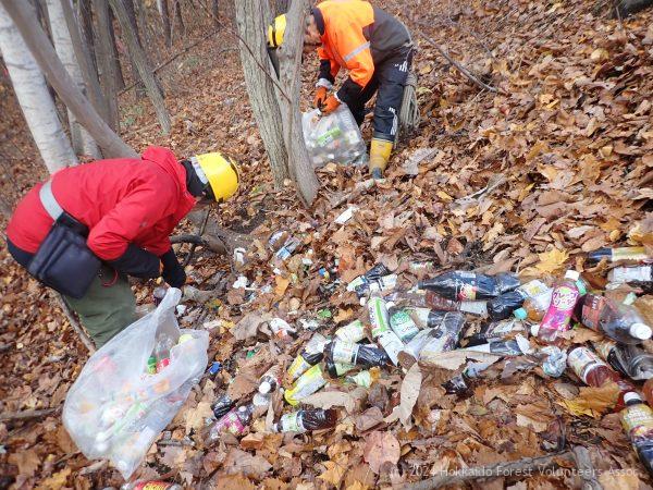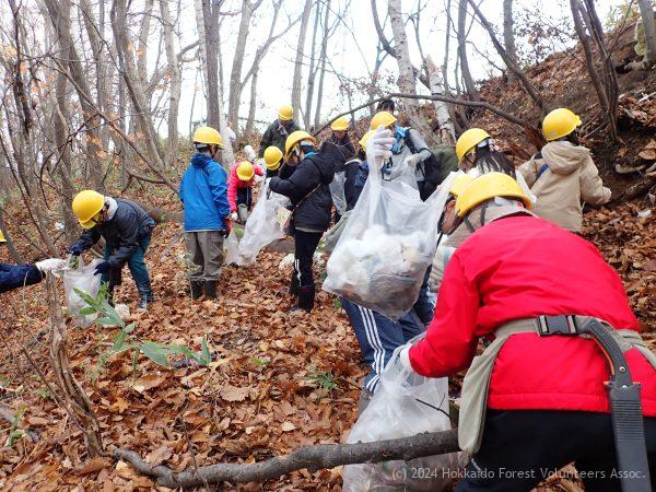・澄川南小活動支援 10月8日の清掃活動の参加が雨で延期となり、改めて日程調整した5年生60名のが協会員と一緒に北地区の清掃活動を行いました。30ℓのゴミ袋70袋分のゴミが集まりました。中身の入ったペットボトルも200本あり、悪臭に耐え中身を空け処分しています。