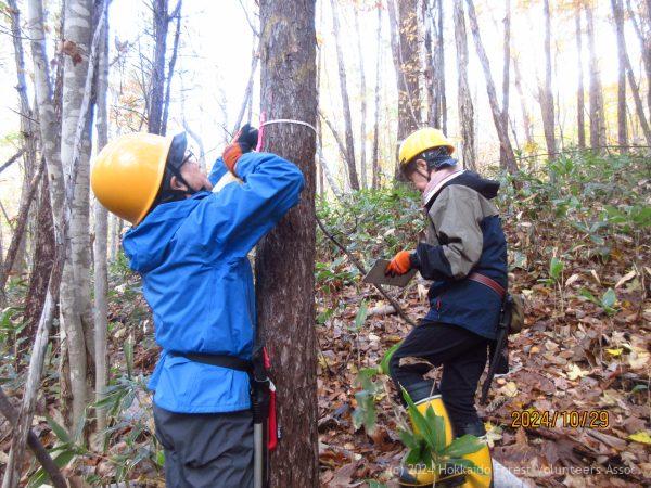 ・選木 F-3区整理伐対象木78本を選木 じょうてつ植樹の標準地と記念樹の樹高調査をしました。
