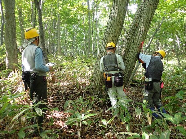 ・選木 A-2区の選木を終え、A-1区に入り96本の伐倒予定木を選びました。
