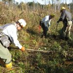 活動には7名が参加し、広葉樹13本の植栽と秋の植樹会予定エリアの草刈りを行いました。
