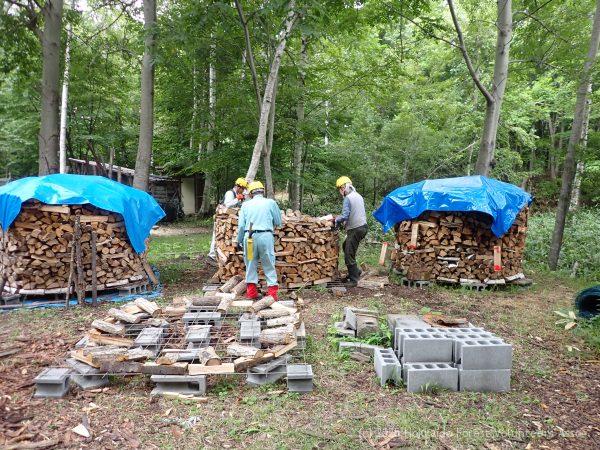 午後は全員で薪割りを行い3個目のスイス積み(写真参照)を終えて4個目に手を掛けました。