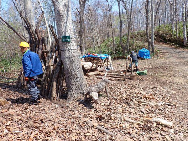 薪用丸太置場整備、A3・4区整理伐木選木、自然観察