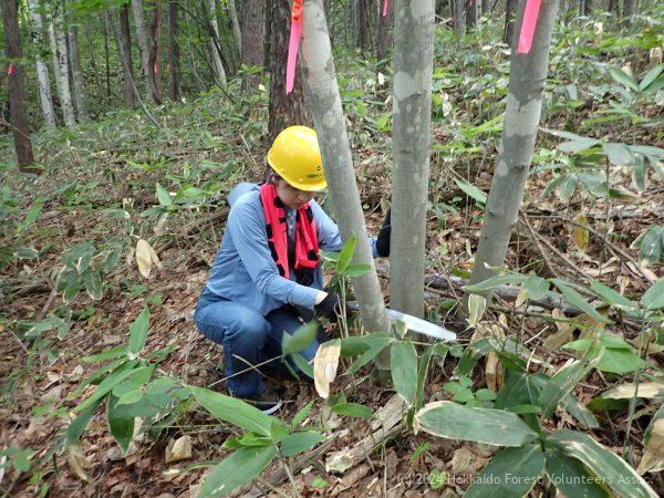 神奈川県の大学生佐藤さんが体験で来られ、活動地を案内、整理伐を体験されました。