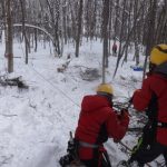 D-2区整理伐、集材 2021年3月17日 最終更新日時 : 2023年11月30日 hy 澄川都市環境林 D-2区の整理伐をチェンソー2班で行いました。整理伐はほぼ終了しました。 キノコホダ木用の丸太を雪の中から掘出し集めました。