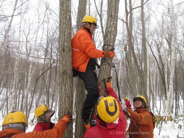 先月の冬季セミナーにて講習したフェリングレバーを使った掛かり木処理について実践を交えた解説があり理解が深まりました。