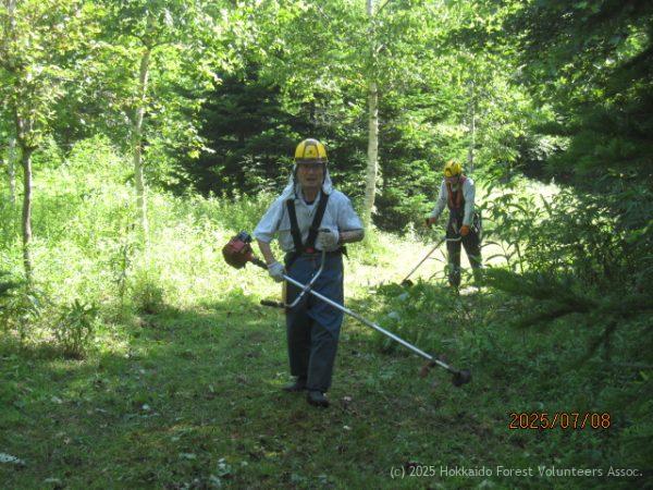 この日は会員8名が参加して2班に分かれてA班(4名)は作業道の草刈り