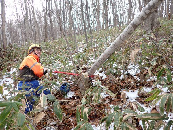 A-3地区での整理伐は手鋸で行い、細めの木を切ったので係り木は無く順調に進み、昼からは中流橋の補修を行い最後にナメコを収穫して2時頃に解散となりました。