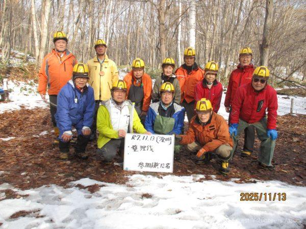 この日は12名が参加し、その内3名が澄川南小学校でネームプレート作成のお手伝いをして、残りの9名は2班に分かれてA-3地区で整理伐活動を行いました。