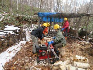 積雪の中、手鋸で整理伐と冬に備えての準備