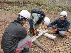 薪用丸太置場整備、A3・4区整理伐木選木、自然観察