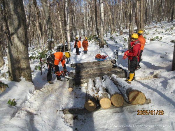 17名が参加してE-8区の整理伐と集材にモニタリングを行いました