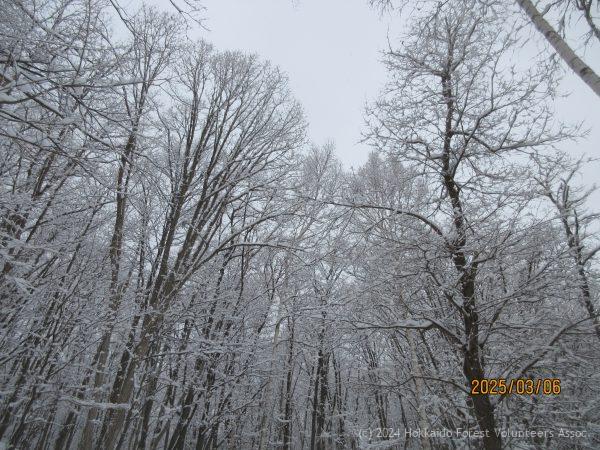 低い雪雲から降る雪で視界が真っ白になり、にぎやかな野鳥の声はすれど姿を見分けることはできませんでした。