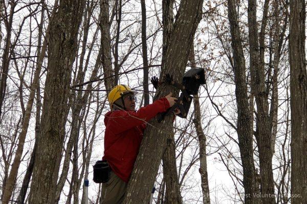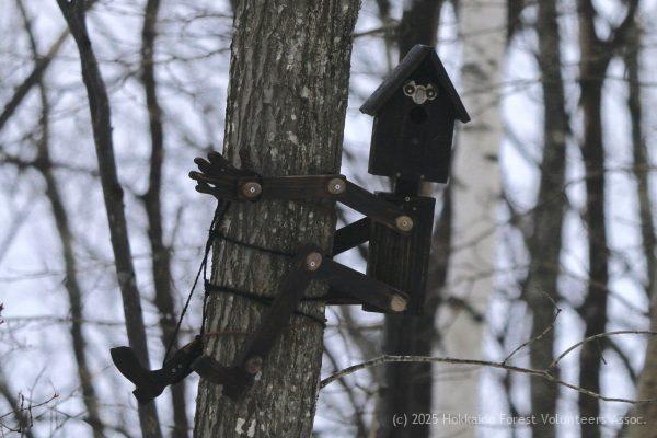 森ボラの匠 西野さんが小屋の裏に木登りboy型の巣箱を掛けてくれました。
