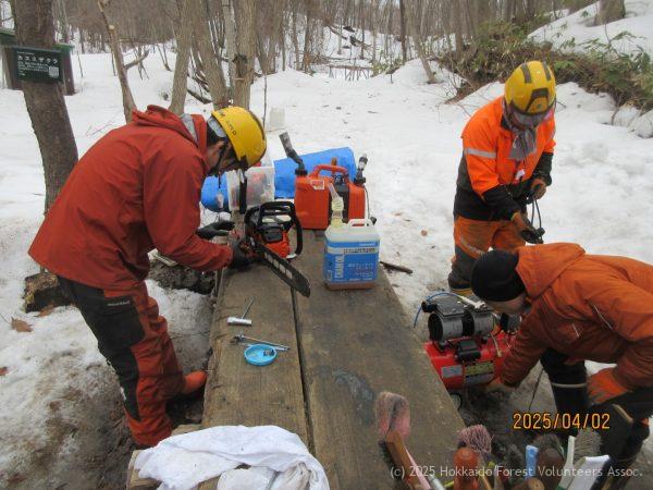 E-8区整理伐・集材、機械整備、避難小屋点検