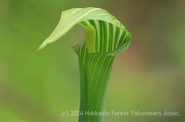 マムシグサの名前の由来は茎の紫褐色のマダラ模様が蝮の姿に似ている事、又苞の形がマムシの鎌首をもたげている形に似ていることで名付けられた。雌、雄異株。