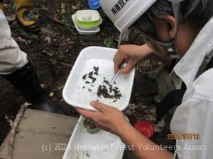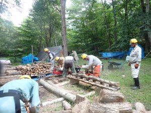 親子教室準備・水質検査・きのこ植菌・作業道整備の各4班に分かれて活動しました。
