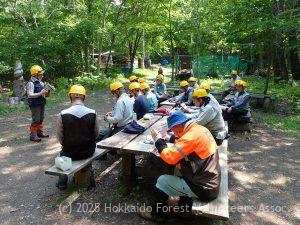 野幌道有林(169林班)、野幌国有林 <B班~D班は道有林の稚樹確認活動> なお、活動開始前に合田協会員から熱中症を中心にコロナ対策との関係を含め講義を頂きました。
