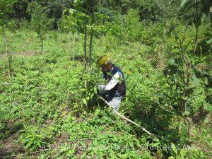 植栽予定地の草刈り、竹支柱設置、地拵え