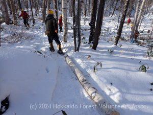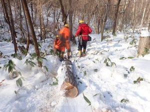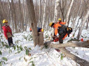 集合時に少し降った雪も止み活動中は良いお天気で気温は0℃くらいで絶好の活動日和でした。 14名が参加し3班(整理伐2班と集材1班)に分かれてE-8区で活動を行いました。 今の所E-8区までの作業道には雪も少なくてスノーシ […]